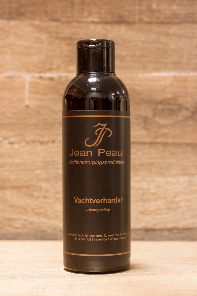 Jean Peau Vachtverharder is een crèmespoeling, die speciaal is ontwikkeld voor de stugge vachten. Prima te gebruiken in combinatie met onze Mineral Shampoo. Door het gebruik van de Vachtverharder wordt de vacht nog beter gevoed en verzorgd, maar behoudt deze wel zijn stevigheid of stugheid.