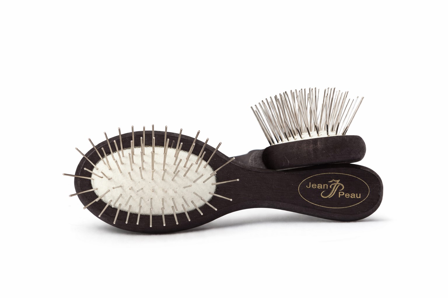 Simpel maar effectief! Deze borstel is erg klein maar werkt erg goed, de dikke pinnen in het ovale kussentje werkt erg goed op hondenvacht. Gemaakt door Jean Peau en dat betekent een kwalitatief product wat lang mee gaat!