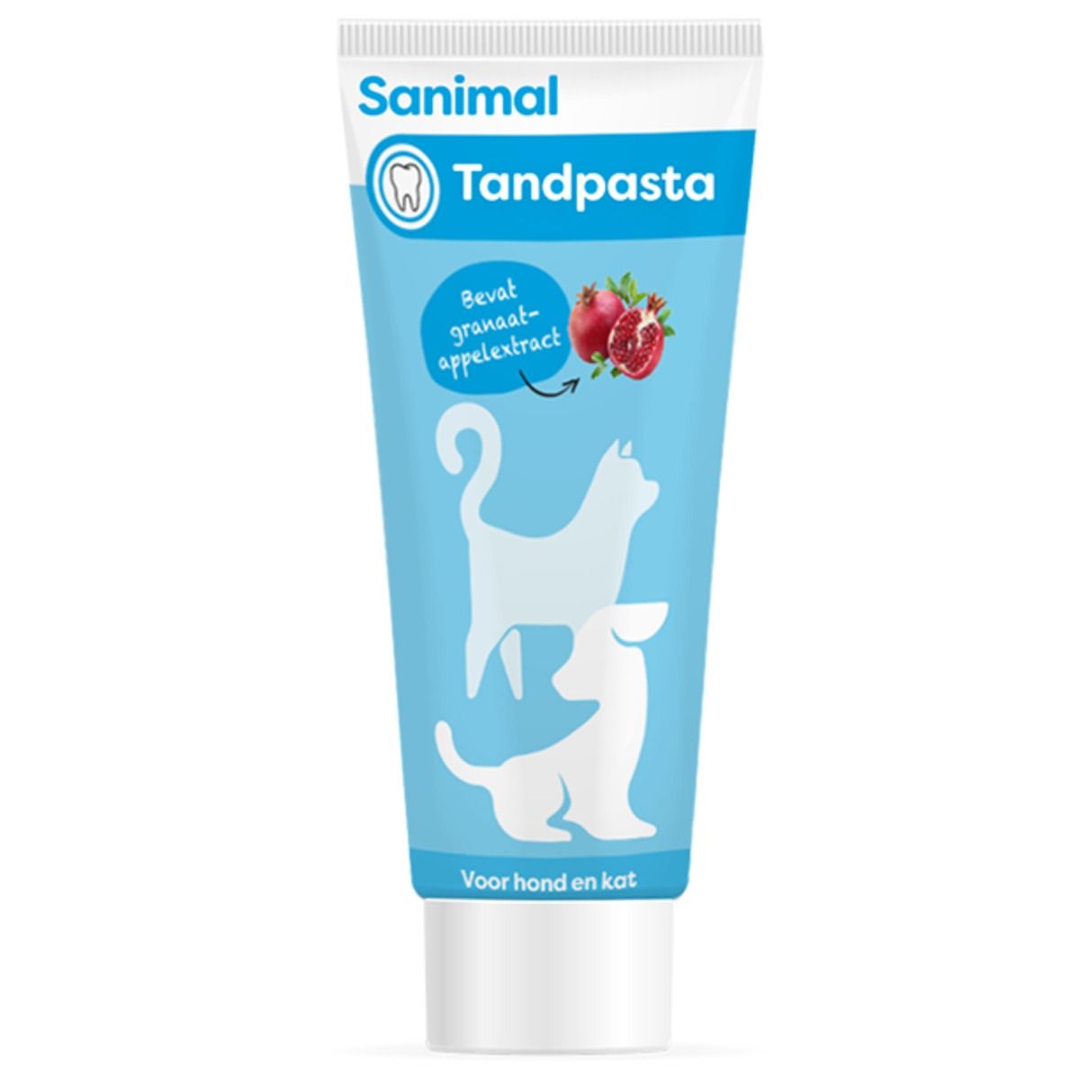 Sanimal Tandpasta is speciaal ontwikkeld om het gebit van honden en katten te poetsen. Het is een natuurlijke oplossing, dankzij de toevoeging van granaatappelextract. Dit is een natuurlijke antioxidant dat beschermt tegen bacteriegroei in de mond. Het zorgt voor gezond tandvlees, reinigt de mond en voorkomt hiermee de vorming van tandplak.