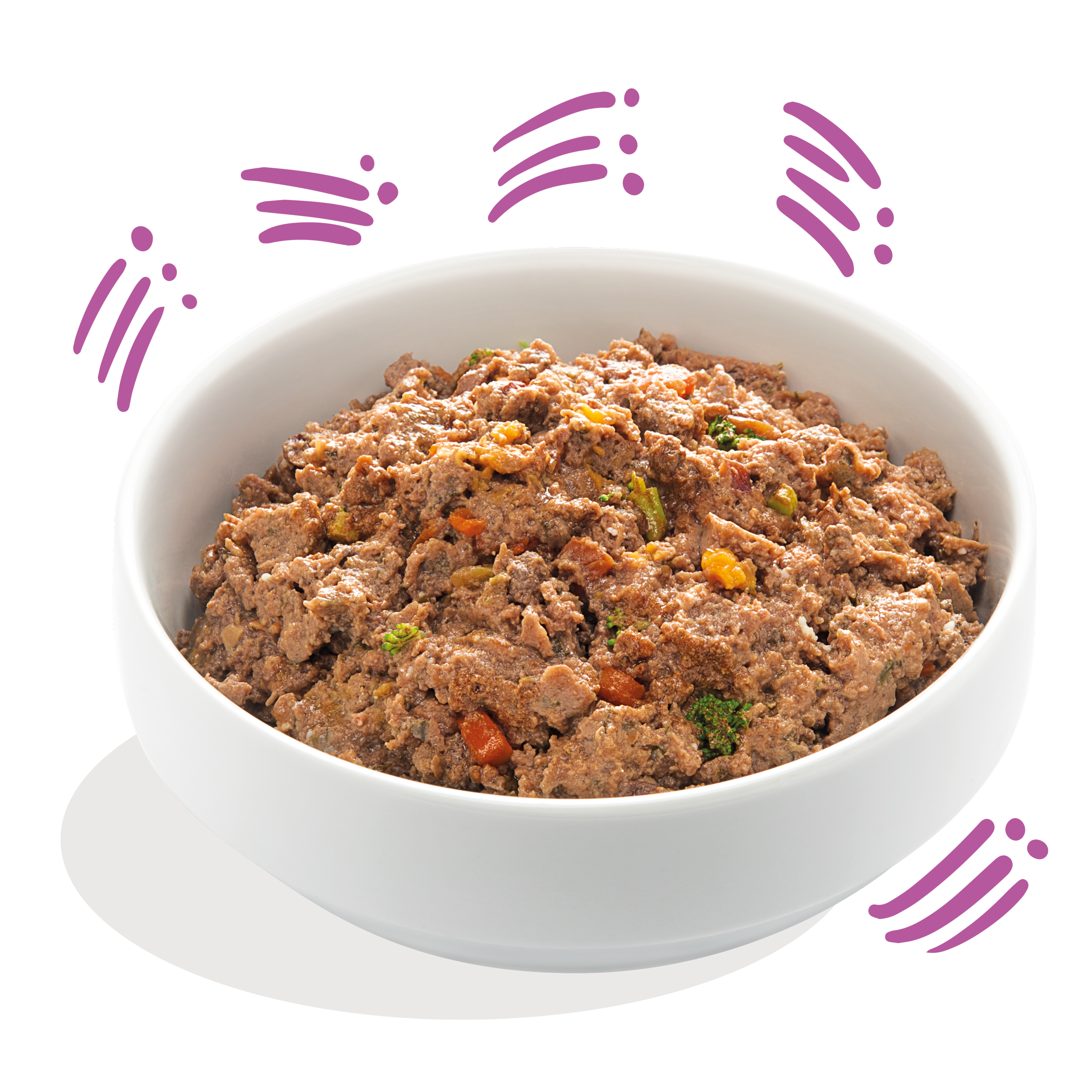 Dit graanvrije recept zit boordevol vlees. Wild en eend zijn unieke hoogwaardige eiwitbronnen, ideaal voor honden met een gevoelig maagje. Wild bevat veel omega 3, goed voor een megazachte en glanzende vacht. Als bonus boosten we de voedingswaarde met extra voedzame orgaanvlees (zoals hart en lever). Al onze recepten bevatten een supergezonde mix van fruit en groenten. Met lekkere kruiden en botanicals als surplus. Die fantastische blend garen we langzaam: zo blijft al dat goede perfect bewaard.