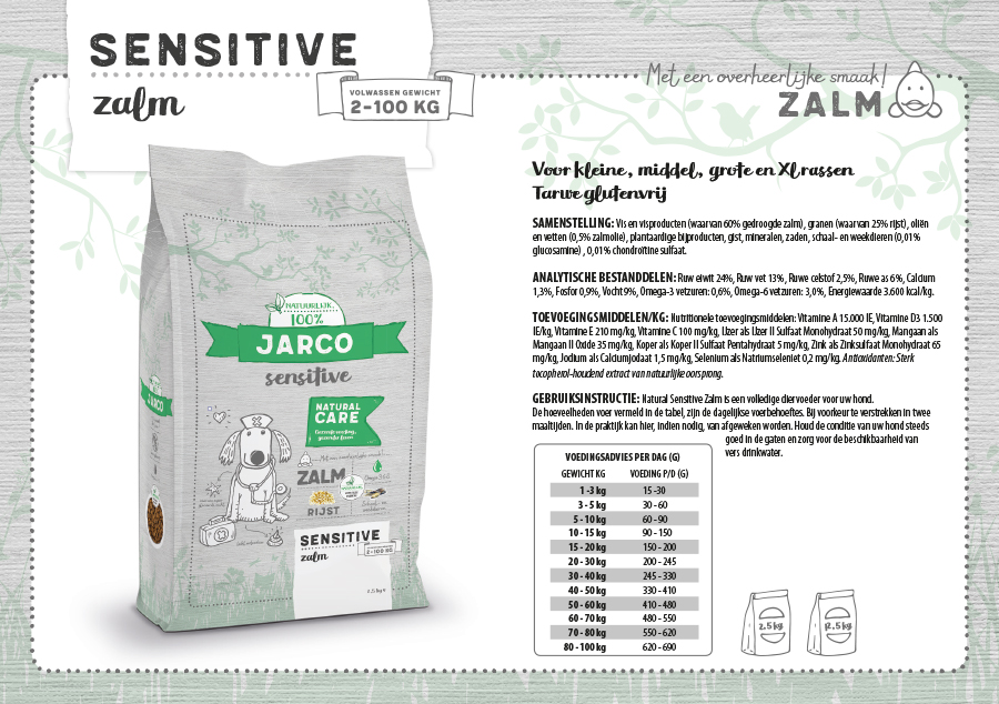 Natural Sensitive Zalm is een hoogwaardige natuurlijke en gezonde voeding. Deze voeding is uitgebalanceerd en speciaal ontwikkeld om aan de energie- en voedingsbehoefte van alle rassen te voldoen. De combinatie van natuurlijke ingrediënten, vitaminen en mineralen is geselecteerd ter ondersteuning van het immuunsysteem en de spijsvertering van uw hond.