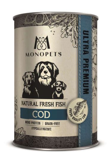 Hypoallergene graanvrije blikvoeding met verse kabeljauw voor alle hondenrassen
