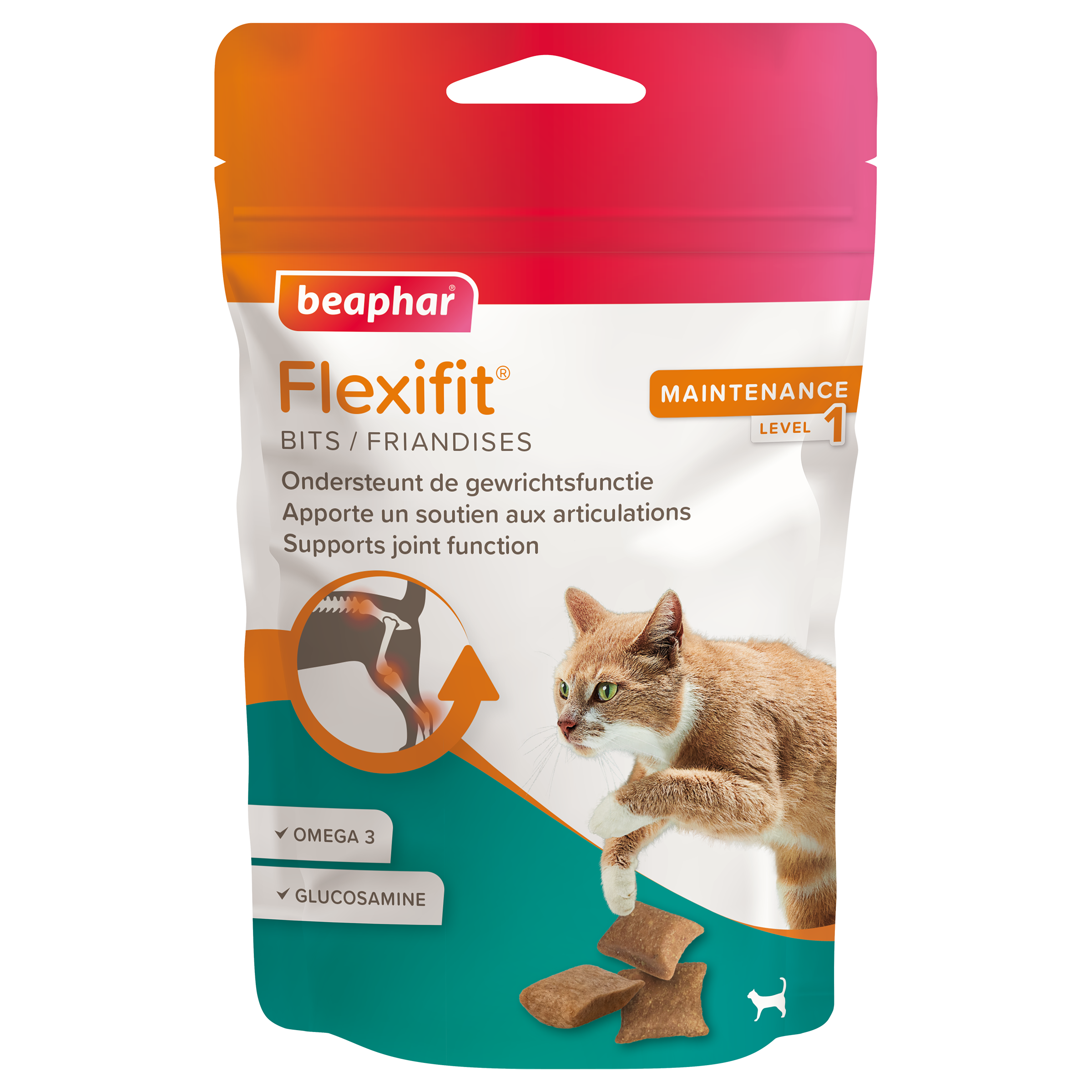 Beaphar Flexifit® Bits is een smakelijke snack, speciaal ontwikkeld om de gewrichtsfunctie van de kat te ondersteunen. De multi-action formule met o.a. glucosamine, omega 3 en vitamine C, helpt soepele gewrichten te behouden en ondersteunt het behoud van sterke botten. Beaphar Flexifit® Bits helpt katten soepel te bewegen en een actief leven te leiden. Beaphar Flexifit® Bits wordt aanbevolen voor katten die extra ondersteuning van de gewrichten nodig hebben. Daarnaast is het een waardevolle aanvulling voor actieve en oudere katten.