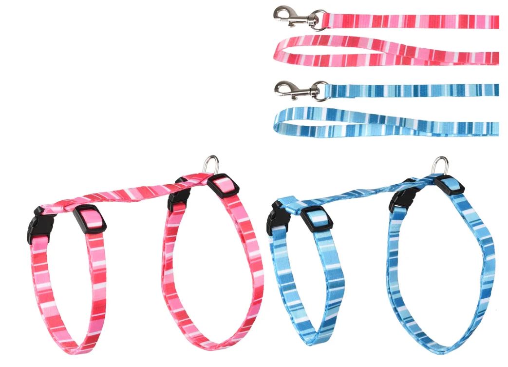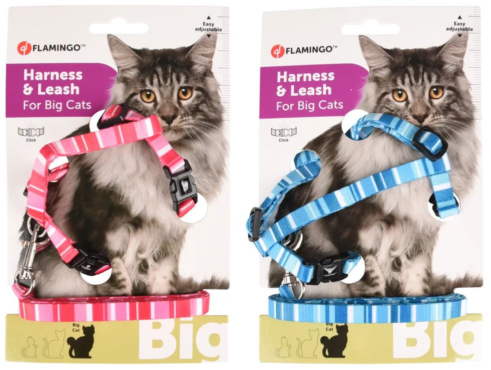 Met het Alfry harnas en looplijn kunnen katten veilig en comfortabel naar buiten. Het harnas is verstelbaar en heeft een handige kliksluiting. De lijn is voorzien van een karabijnhaak en de metalen onderdelen zijn verchroomd. Perfect voor een ontspannen wandeling!