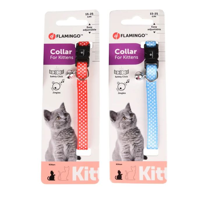 Onze schattige Aiwa kittenhalsbandjes zijn voorzien van een belletje en een handige kliksluiting. Kies uit rood of blauw en laat je verrassen met een willekeurige kleur. Perfect voor jouw kleine pluizenbol!