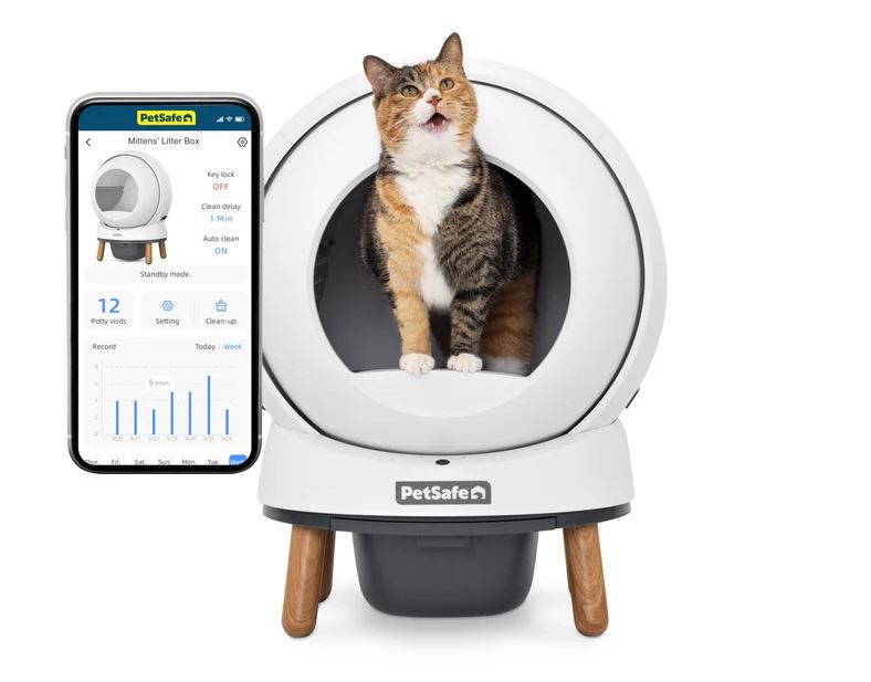 - De PetSafe SmartSpin app geeft je realtime gezondheidsgegevens, waaronder gewichtsupdates en informatie over het gebruik van de kattenbak, rechtstreeks vanaf je telefoon (beschikbaar in de Google Play Store en de App Store).