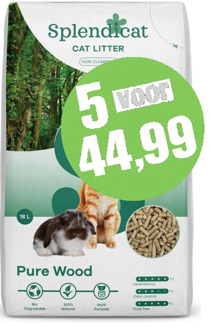 Splendicat Pure Wood is een niet-klontvormend product gemaakt van ?jn hout, samengeperst tot pellets. Dit volledig natuurlijke product absorbeert vloeistof en geur waarna het uiteenvalt in zaagsel op de bodem van de kattenbak.Naast kattenbakvulling kan Splendicat Pure Wood ook gebruikt worden als bodembedekking voor vogels, knaagdieren en konijnen.
