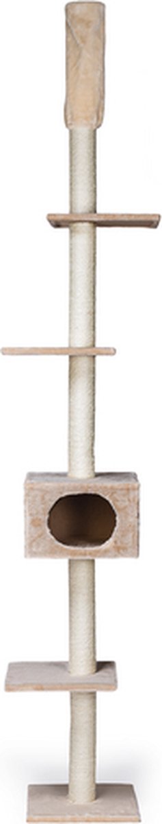 De krabpaal Karlie Cometa is ideaal voor alle katten die van klimmen houden en voor iedereen die graag hoog reikt. De plafondspanner biedt de kat op een kleine voetafdruk veel ruimte om zijn klauwen te slijpen, te klimmen, te spelen, te dommelen, te slapen en te observeren. Een gezellige, pluchen grot is het ideale toevluchtsoord voor een ongestoord dutje. Drie platforms, eveneens bekleed met hoogwaardig pluche, bieden extra slaapplaatsen. Stammen omwikkeld met natuurlijk sisal maken uitgebreide klauwverzorging mogelijk. De krabpaal is verstelbaar (233 tot 263 cm) en kan daardoor worden aangepast aan de plafondhoogte. Door hem tussen vloer en plafond te bevestigen is een stevige stand gegarandeerd. De diameter van de sisal krabpalen bedraagt ??ca. 9 cm.