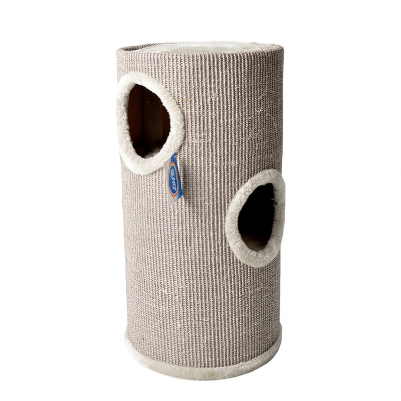 De krabton Tower van Duvo+ is een mooie krabton voor uw kat. De krabpaal heeft 3 heerlijke zachte uitsparingen bekleed met fleece. Bovenaan is er een heerlijk pluche ligplaats waar uw kat kan rusten en waar hij een mooi overzicht heeft van zijn omgeving. Daarnaast kan uw kat zijn nagels scherpen aan het sisaltouw dat rondom de krabton verlijmd is. Voor extra speelplezier hangen er speeltjes in de krabpaal.