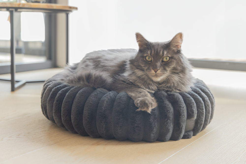 Laat jouw kat ultiem ontspannen op deze Designed by Lotte Kattenmand Reza. Deze prachtige fluffy kattenmand is bekleed met een heerlijk zachte ribstof. De ronde vorm en opstaande randen van deze mand bieden jouw kat een fijne plek om zich lekker in op te krullen. Veel katten slapen van nature in een opgerolde houding om kwetsbare delen, zoals de buik, te beschermen. De mand kan op 30 graden in de wasmachine worden gewassen. De antislip bodem voorkomt verschuiven, zodat de mand stevig op zijn plaats blijft liggen. Kortom, jouw kat kan heerlijk comfortabel uitrusten in deze Designed by Lotte kattenmand, die bovendien perfect past in ieder interieur.