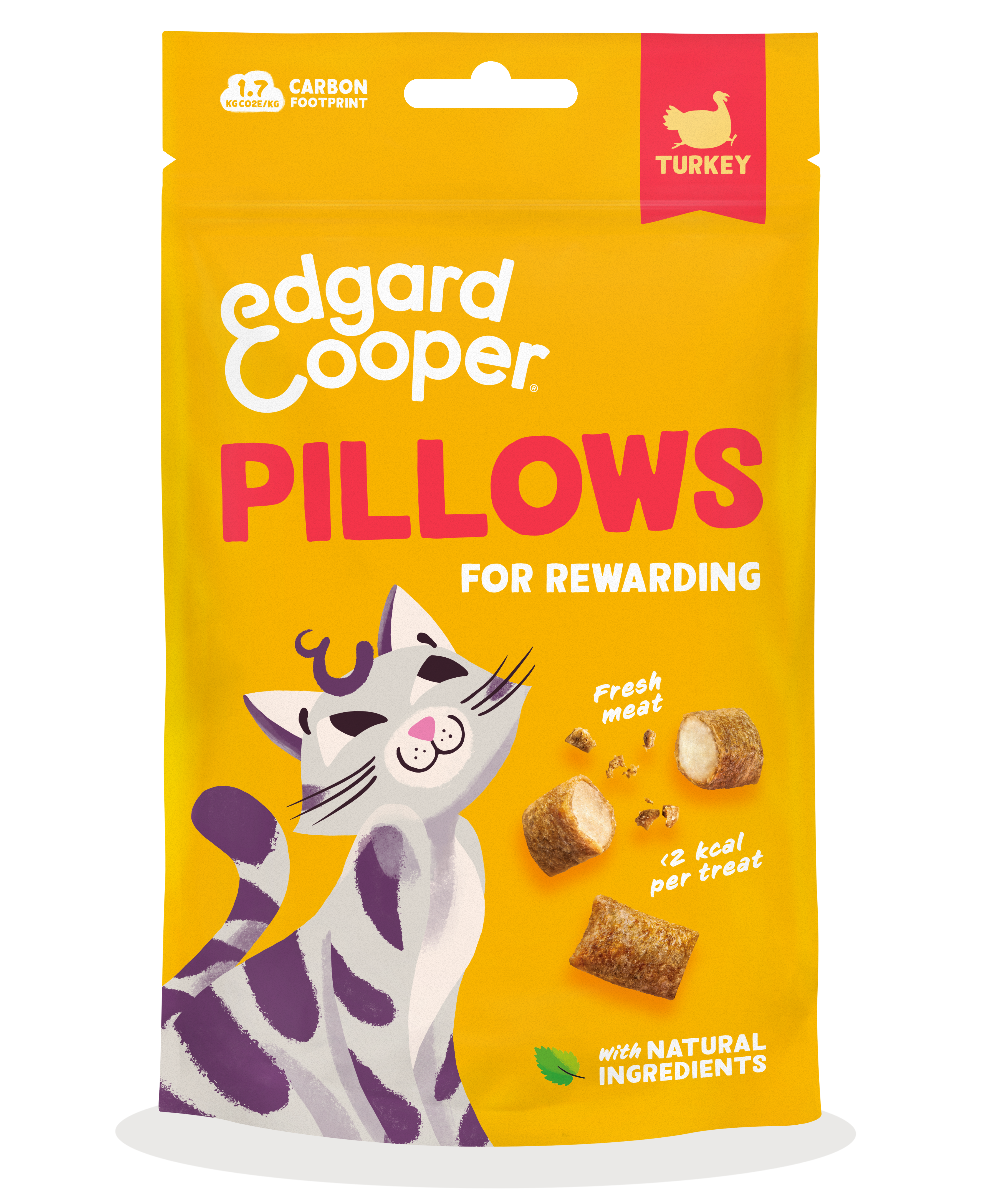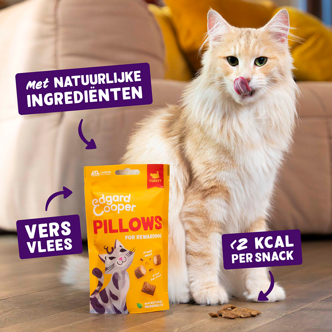 Met onze overheerlijke Pillow snacks beloon je alles wat zalig is aan katten. Omdat ze je zetel niet als krabpaal gebruiken, omdat ze spontaan in hun reismand springen of gewoon omdat ze zo schattig zijn. Pillows zijn de verdiende beloning voor poeslief gedrag.