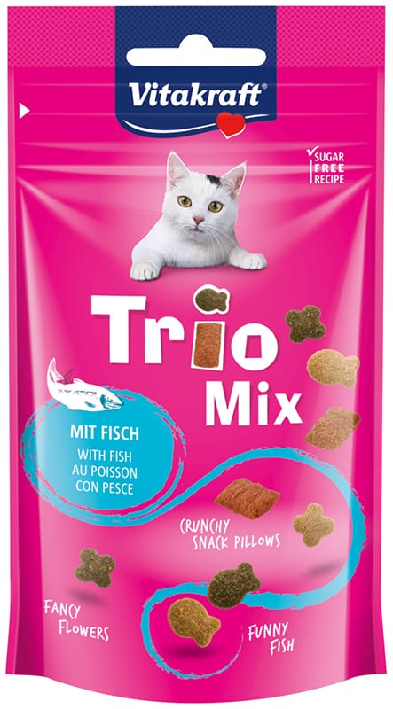 Drie krokante snacks met vissmaak in de mix, inclusief romig gevulde krokante kussentjes. Met vitamines, sporenelementen en taurine voor de ondersteuning van de ogen en het hart.
