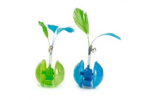 Een Beeztees plastic kattenspeeltje genaamd Rolly Bolly. Zoals de naam al doet vermoeden rolt dit kattenspeeltje allerlei kanten op als deze wordt aangeraakt door uw kitten, of kat. Bovenop het speeltje zitten een aantal veertjes voor extra uitdaging om mee te gaan spelen. Doorsnede: 5 cm. Te bestellen in een display.