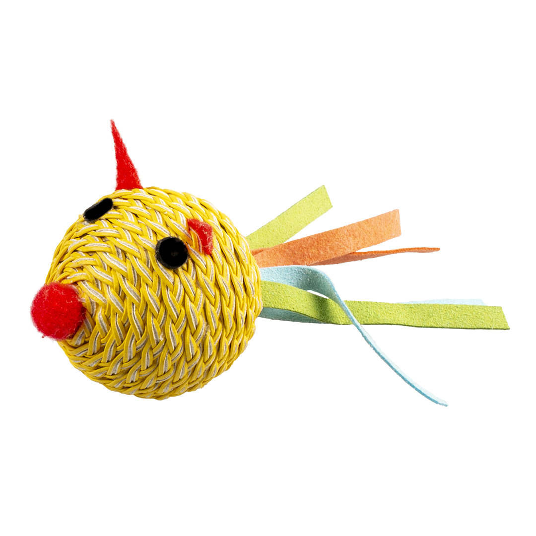 Deze kleurrijke Jolly muis van duvoplus is omhuld en afgewerkt met lederen koorden. Als extra fun factor maakt het speeltje geluid bij beweging. Katten hebben vaak de neiging om te dik te worden, een actief speeltje houdt katten fit en gezond. Uren speelplezier gegarandeerd.