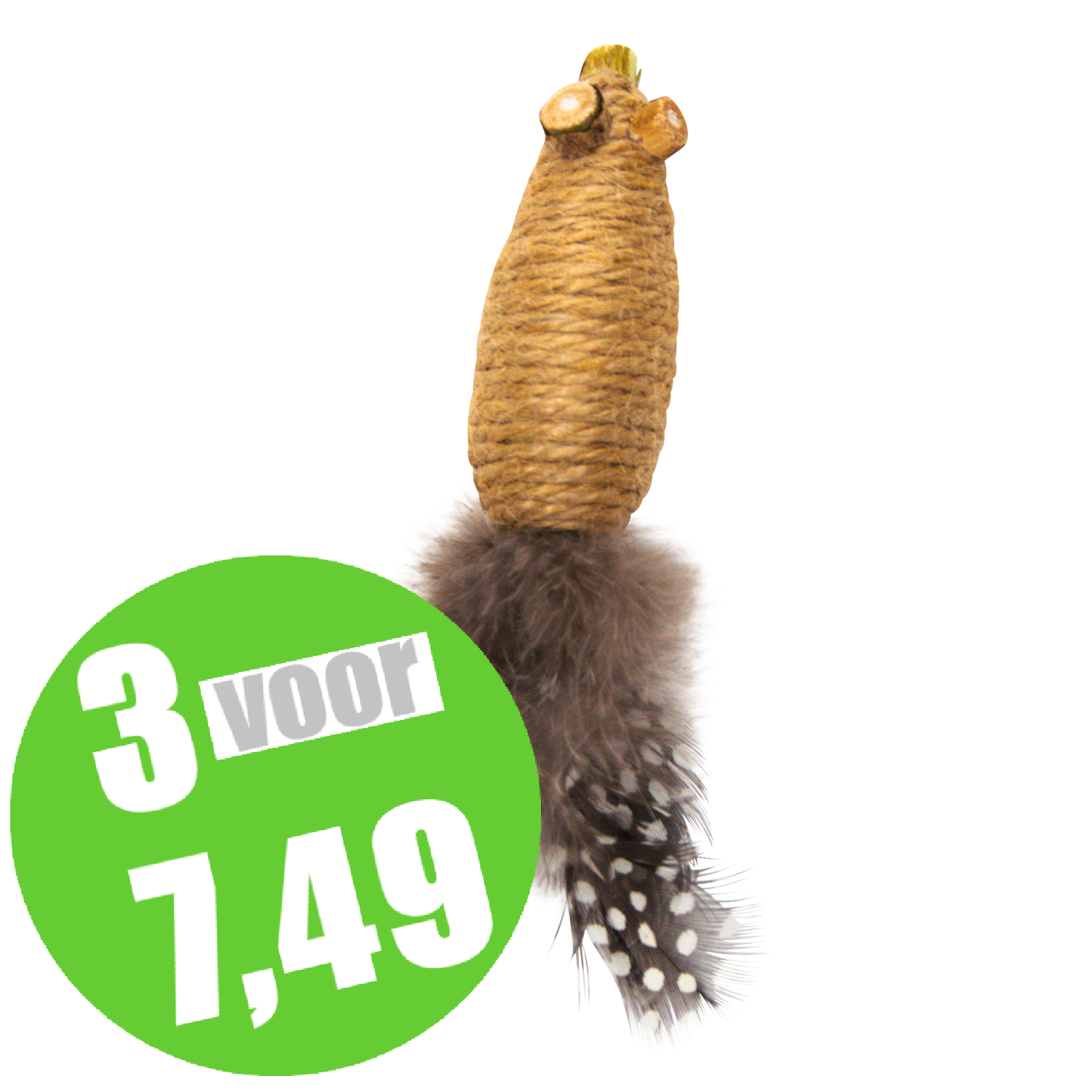 Dit natuurlijke speeltje, gemaakt van hennep en voorzien van een veer, stimuleert de zintuigen en bevordert het natuurlijke speelgedrag van je kat. Hennep zorgt voor intensief speelplezier, en het schuureffect kan bijdragen aan de gebitsverzorging van je huisdier. Een ideale keuze voor speelse en actieve katten. Alleen te gebruiken onder toezicht.