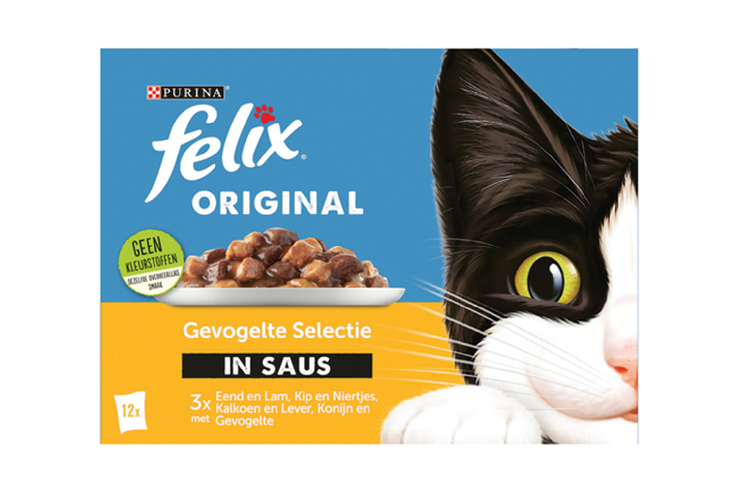 Felix Elke Dag Feest dubbel zo lekker is kattenvoeding die er zó lekker uitziet en zó goed ruikt, alsof de baas het zelf heeft klaargemaakt.