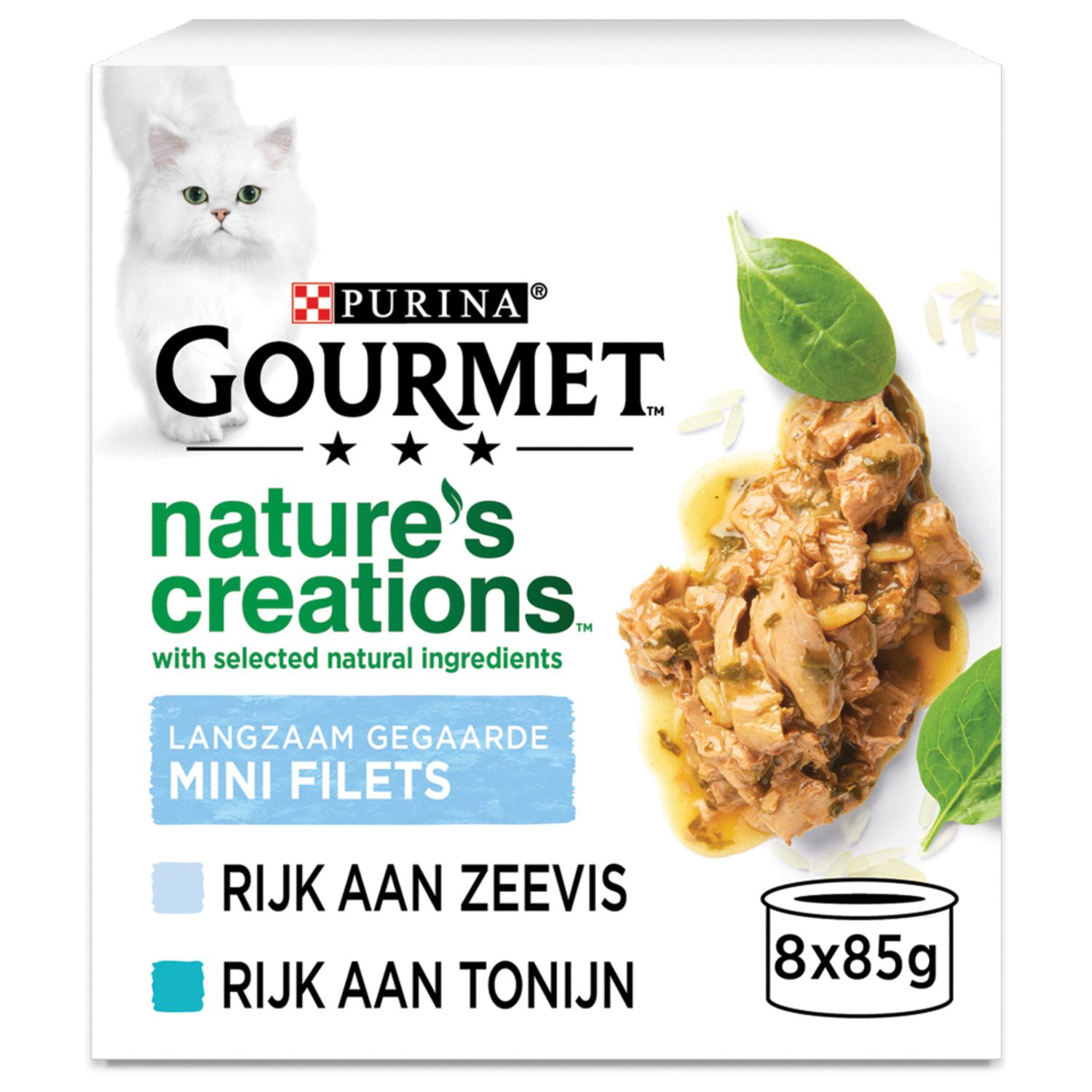 Gourmet Nature’s Creations is een collectie van heerlijke recepten geïnspireerd door de natuur. Deze recepten zijn zorgvuldig gemaakt met geselecteerde natuurlijke ingrediënten van hoge kwaliteit, op vakkundige wijze gekookt en rijk aan zeevis of tonijn gegarneerd met groenten zoals spinazie, tomaten en rijst. Elk uitstekend recept is gemaakt zodat uw fijnproever kan genieten van iedere hap. Gourmet Nature’s Creations. Heerlijke maaltijden, geïnspireerd door de natuur.