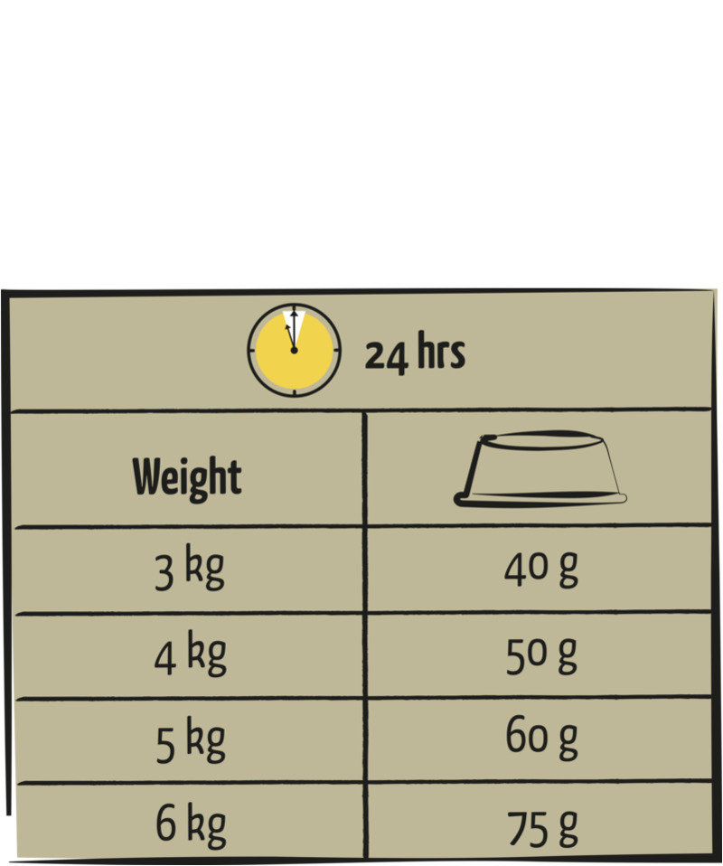 Eiwit 32,0% | vetgehalte 9,0% | ruwe celstof 3,0% | ruwe as 7,5% | calcium 1,1% | fosfor 1,0% | taurine 0,35%