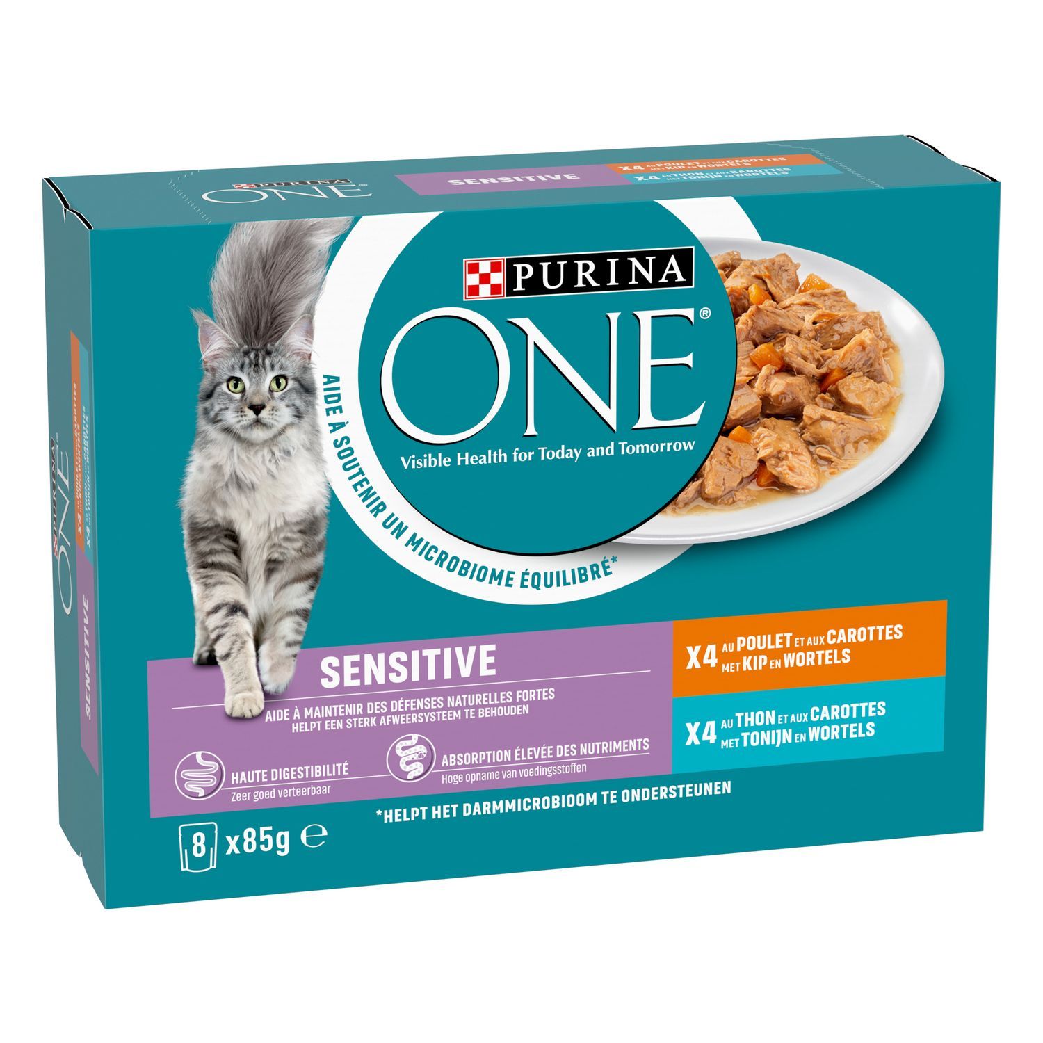 Purina ONE® Sensitive natte voeding zijn synoniem voor een hoogwaardig en smakelijk dieet dat specifiek is afgestemd op de levensstijl van uw kat.