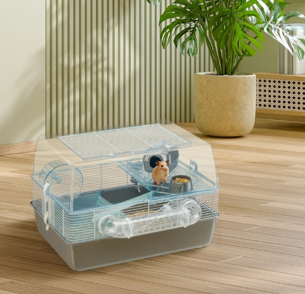 De Duna Fun is een hamsterkooi met drie verdiepingen, voorzien van alle gemakken. Binnenin vind je een nestje voor knaagdieren, een ladder, een drinkfles, een loopwiel en transparante buizen – essentiële accessoires om ervoor te zorgen dat je kleine vriendje zich prima vermaakt.