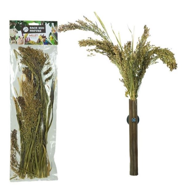 Back Zoo Nature Panicum is een natuurlijke aanvulling op het dieet van je vogels en knaagdieren. De Panicum behoort tot de familie van de trosgierst en vogels en knaagdieren zullen hier ook echt van smullen. Een aangename afwisseling voor vogels en knaagdieren op de reguliere trosgierst.