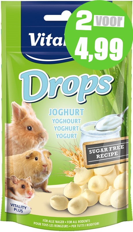 Heerlijke snoepjes met verfijnde yoghurt. Deze populaire Drops hebben een perfecte portiegrootte. Zeer geschikt als tussendoortje en ook ideaal als beloning. De Drops zijn geschikt voor alle knaagdieren en konijnen. Bereid volgens suikervrije receptuur, zonder kunstmatige kleurstoffen, smaakversterkers en conserveringsmiddelen. Verpakt in een hersluitbare stazak.