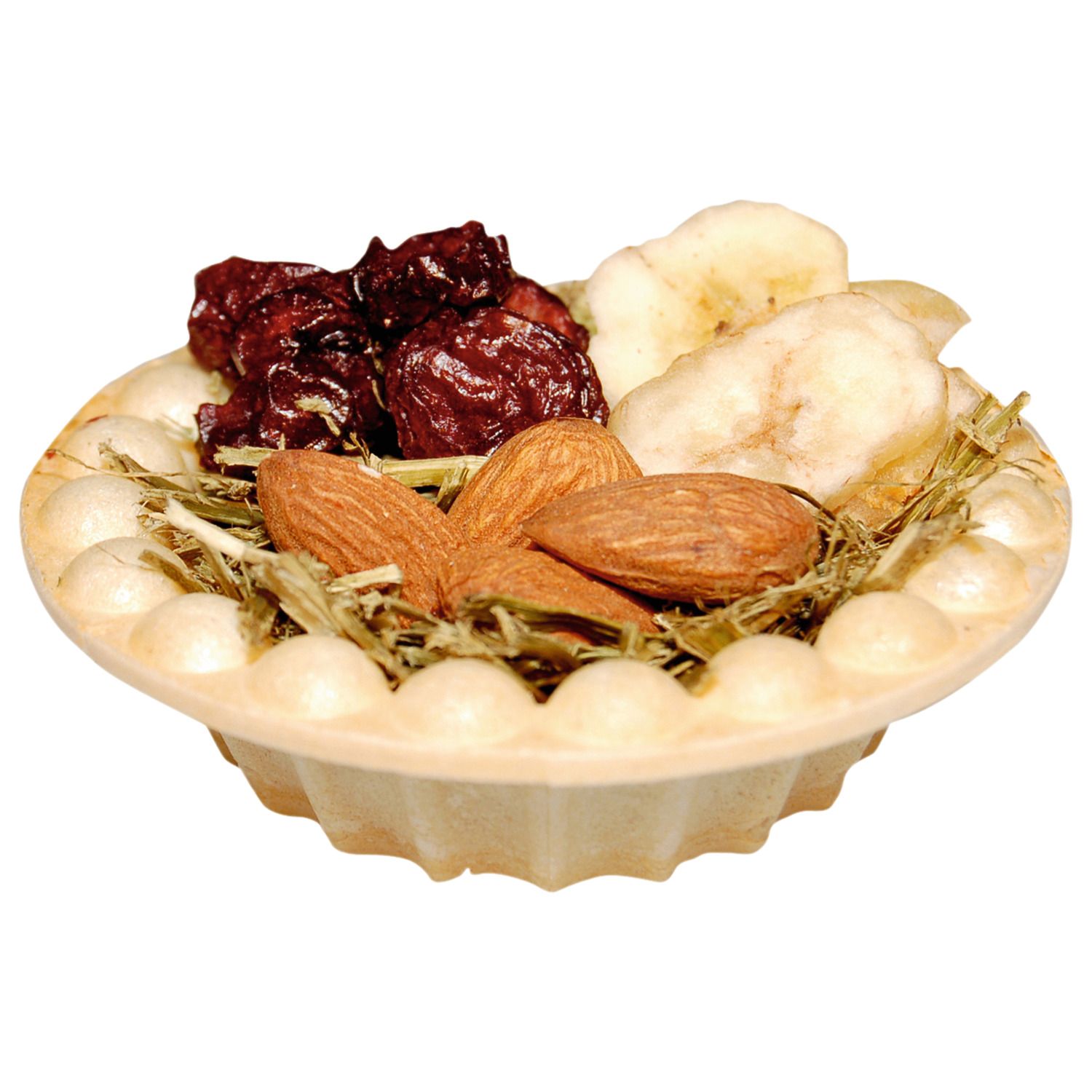 Wil jij je knaagdier of konijn in het zonnetje zetten en je gezinslid groots verrassen? Geef je lieve vloerpruik dan dit overheerlijke knabbelmandje met fruit cadeau! Op het wafelmandje liggen bananenschijfjes, kersen en knapperige amandelen op een bedje van luzerne. Kortom, een echte verrassing voor je knabbelkont. Deze Vitakraft knaagdiersnack bevat geen toegevoegde suikers, kunstmatige kleurstoffen en conserveermiddelen. Een smakelijk geschenk voor je knaagdier of konijn dus!