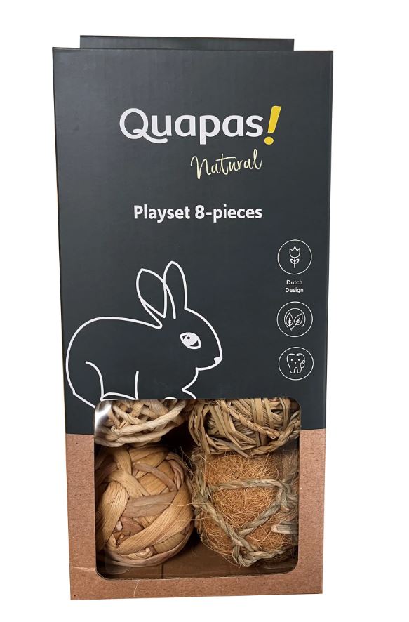 Een leuke giftset voor konijnen en knaagdieren – de Quapas! Nibble Giftbox bevat 8 natuurlijke ballen voor speelplezier en gezonde tandjes.