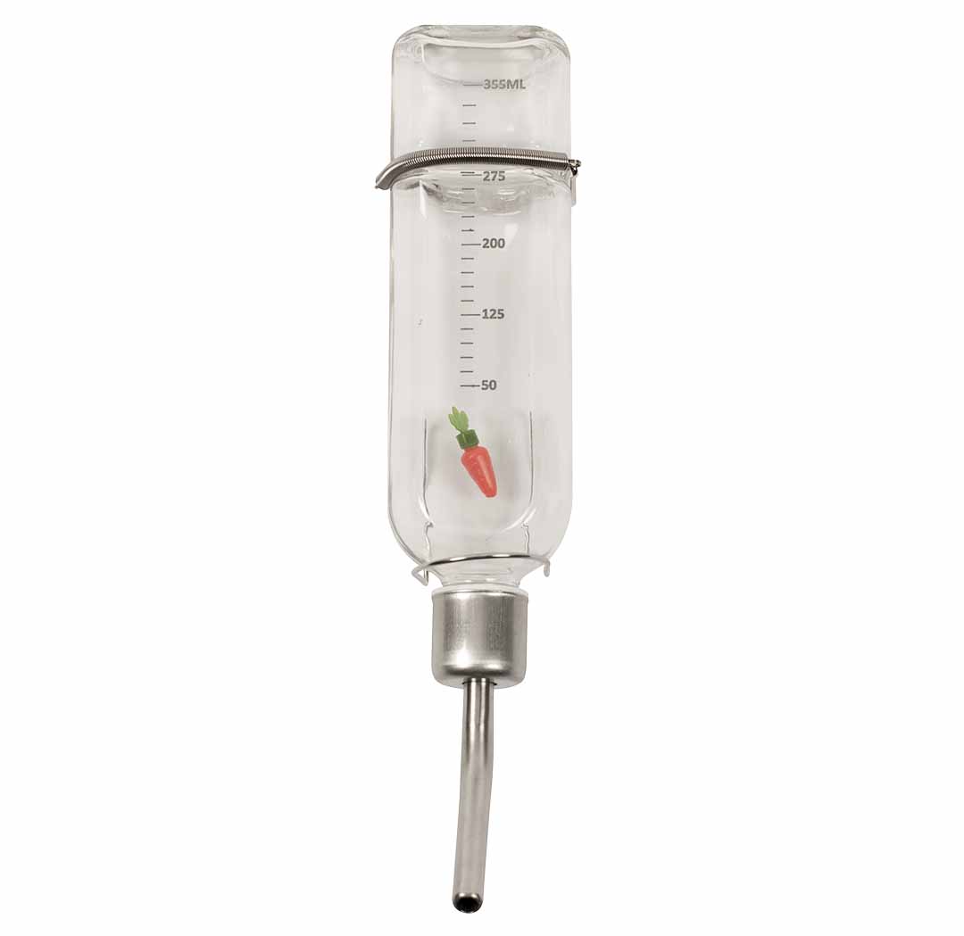 Deze stevige duvoplus drinkfles uit gerecycleerd glas is geschikt voor konijnen en knaagdieren. De aluminium drinktuit is voorzien van een dubbele kogel om lekken tegen te gaan. De drijvende wortel geeft het waterniveau weer. Gemakkelijk op te hangen aan het verblijf dankzij de beugel. Vaatwasserbestendig.