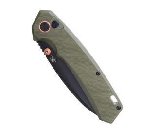 De Rondane een echte alleskunner die met zijn robuuste constructie geschikt is voor gebruik in outdoor of bushcraft activiteiten. Eenvoudig één handig open te klappen doormiddel van zijn duimstud of door de knop aan de zijkant van het lemmet in te drukken. De Rondane beschikt namelijk over een button-Lock. Dit knop vergrendelingsmechanisme is eenvoudig te bedienen en vergrendeld het mes in geopende stand. Het brede bladvormige lemmet is gemaakt van 8Cr13MoV staal. Een staalsoort met uitstekende taaiheid en zeer goede herslijpbaarheid. Verder is deze afgewerkt met een zwarte coating, deze coating is er niet alleen voor de uitstraling maar verhoogt ook de corrosiebestendigheid en verminderd snijweerstand. Het heft is gemaakt van getextureerd G10, dit is een composiet materiaal met uitstekende slijtvastheid, een stevige grip (zelfs in natte omstandigheden) en een subtiele maar luxe uitstraling. Het mes is uitgerust met een deep-carry draagclip en een koordoog.