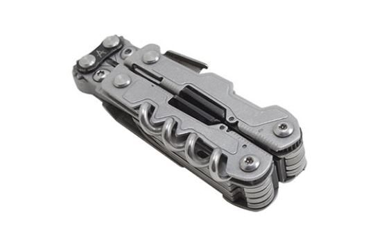 Een compacte 12-delige multifunctionele tool met 18 functies. Soepel in gebruik door de unieke tandwieloverbrenging. Voorzien van onder andere magnetische Hex bithouder, zowel inch als mm meetlat, krimptang, schaar, haakmes, priem en krukkentrekker met hefboomwerking. Gemaakt van stonewashed RVS met pocket clip.