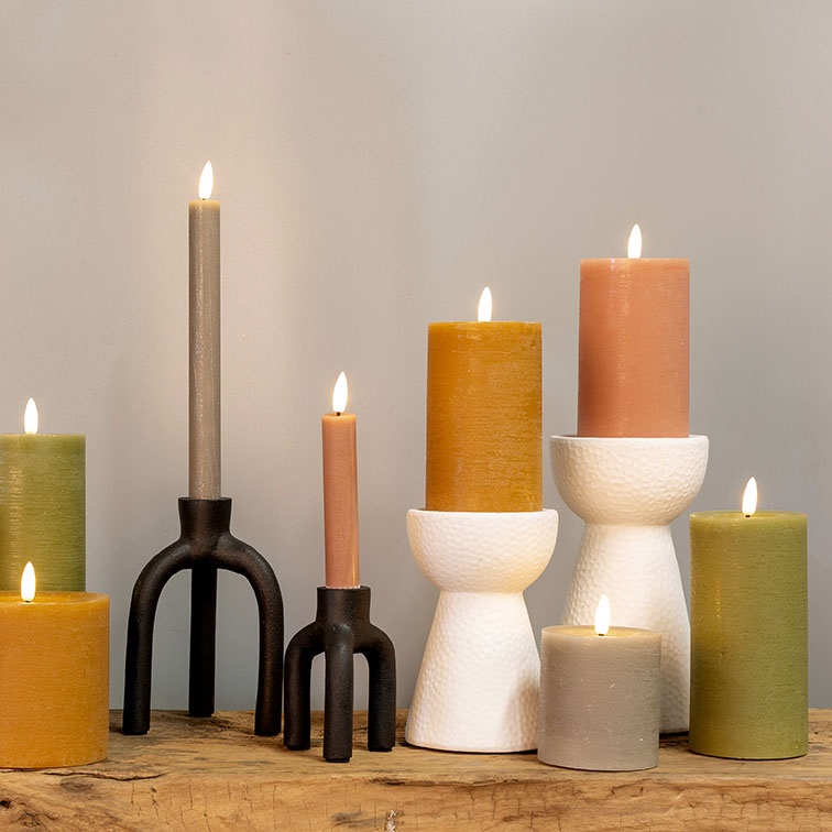 Verbeter de sfeer van elke ruimte met onze prachtige collectie LED-kaarsen. Onze rustieke stompkaarsen met LED-verlichting zijn de perfecte aanvulling op je nieuwe interieurcollectie. Deze trendy LED-kaarsen zijn met zorg gemaakt en verkrijgbaar in verschillende kleuren en maten, passend bij elke stijl. Ervaar de warme gloed en uitnodigende sfeer die ze creëren, en breng een vleugje elegantie in jouw woondecoratie collectie. Kies uit klassieke zwarte LED kaarsen of ontdek onze reeks Countryfield LED kaarsen voor een echt uniek middelpunt.