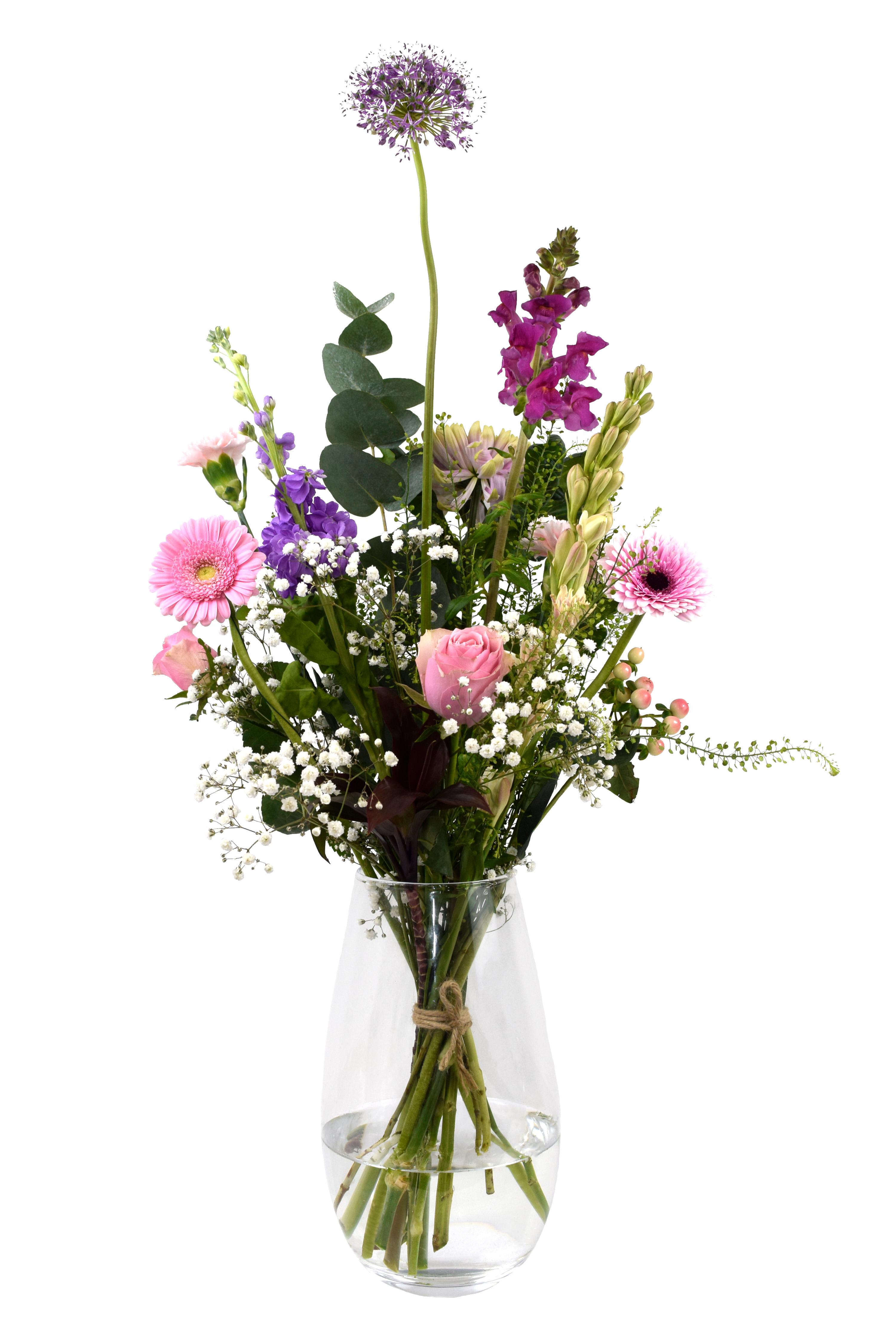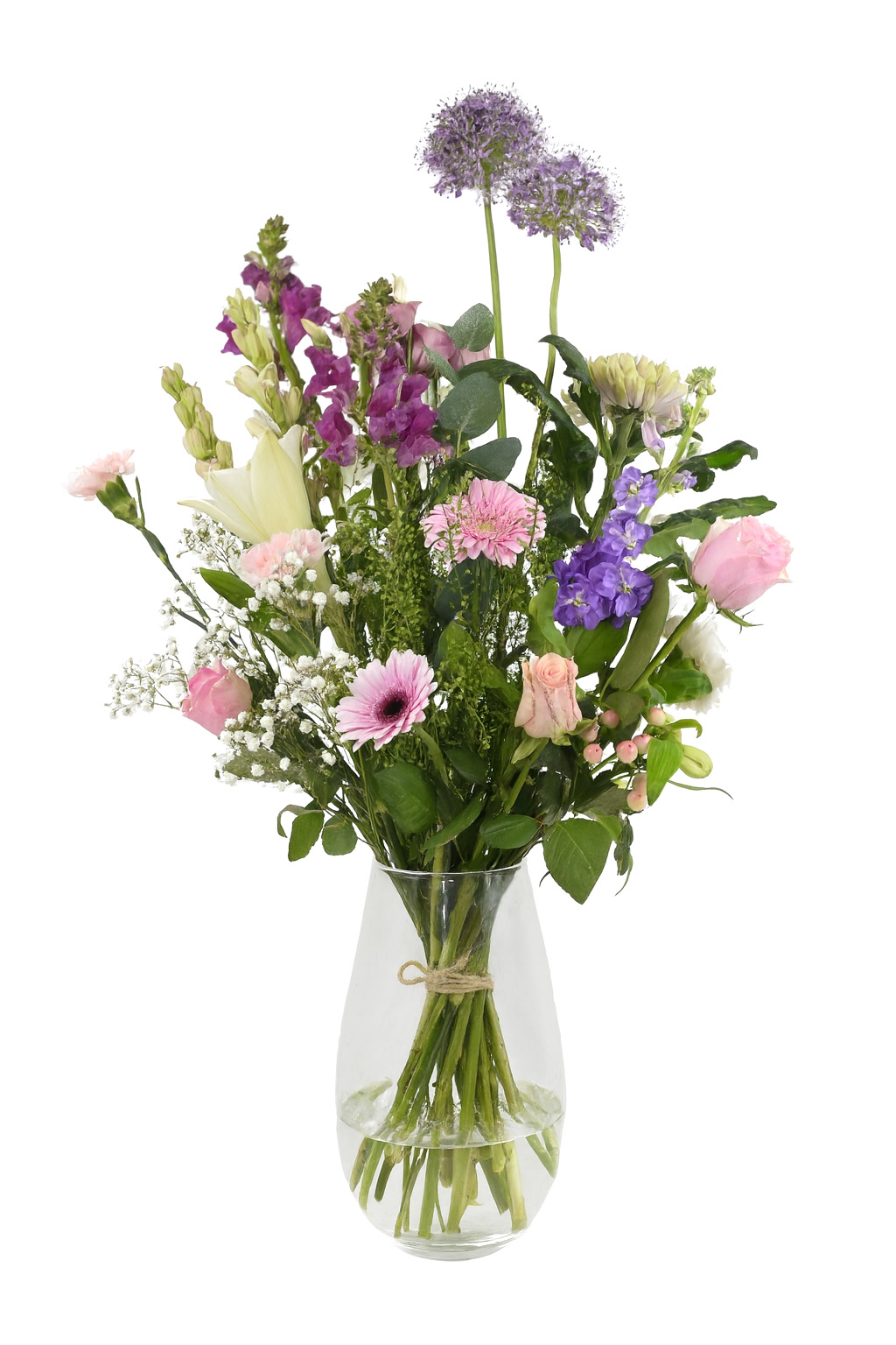 Let op: Het daadwerkelijke boeket kan iets afwijken van de afbeelding, afhankelijk van de beschikbaarheid van bloemen. We stellen altijd een verse en passende samenstelling samen in dezelfde stijl en sfeer.