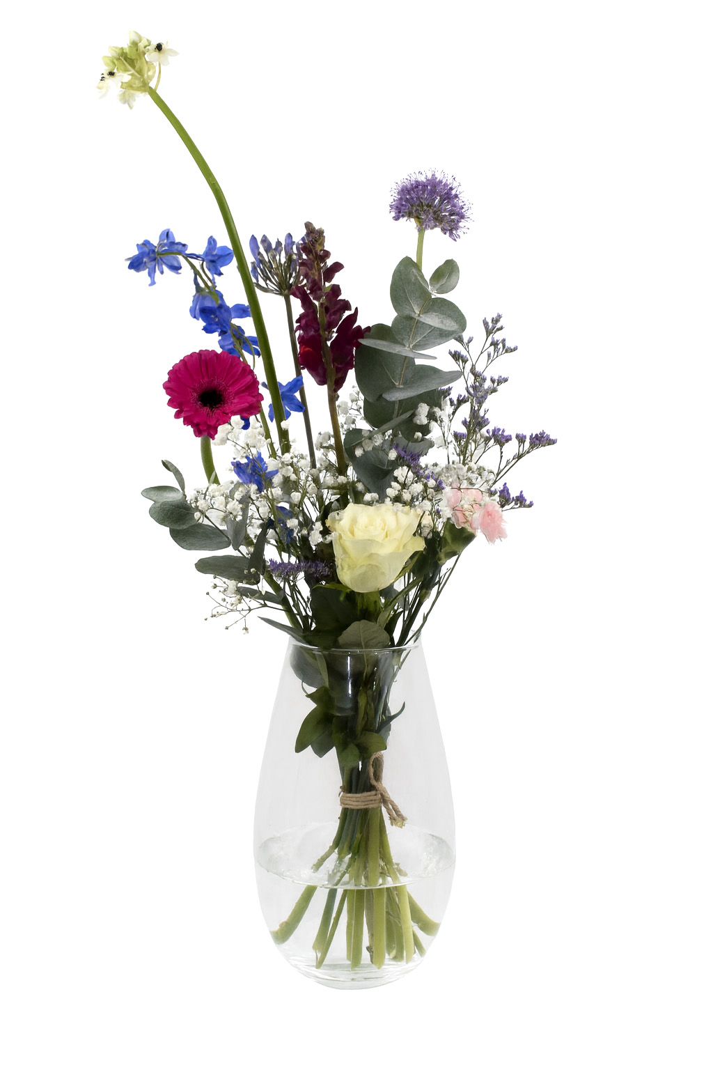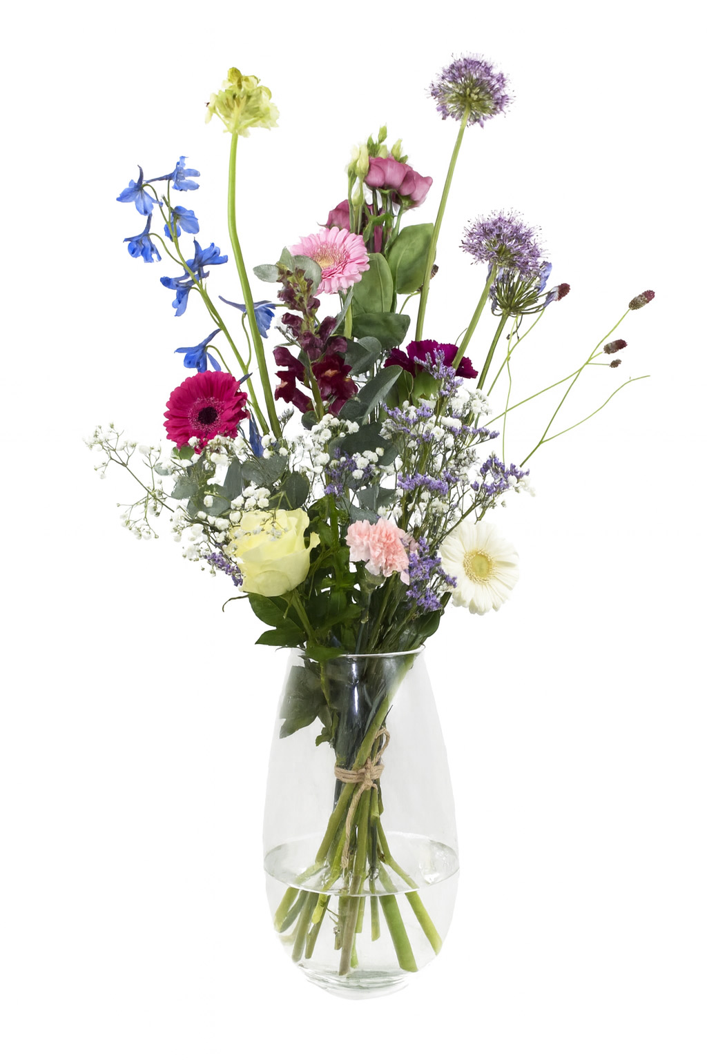 Let op: Het daadwerkelijke boeket kan iets afwijken van de afbeelding, afhankelijk van de beschikbaarheid van bloemen. We stellen altijd een verse en passende samenstelling samen in dezelfde stijl en sfeer.