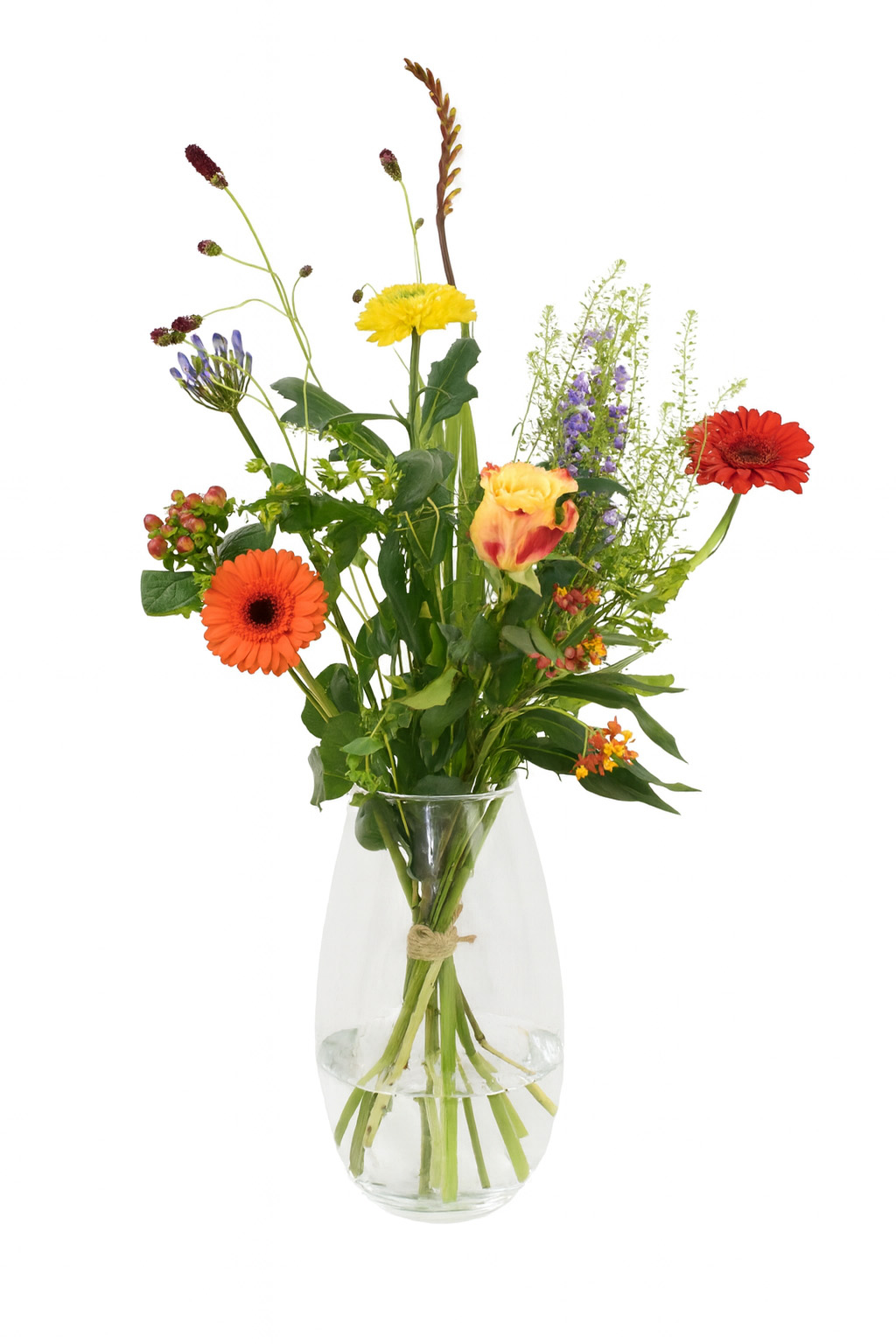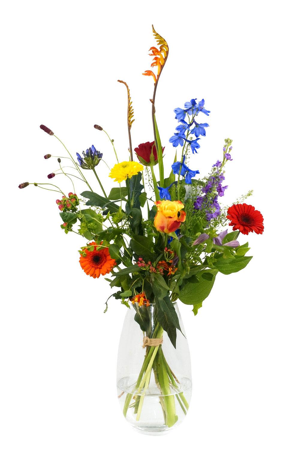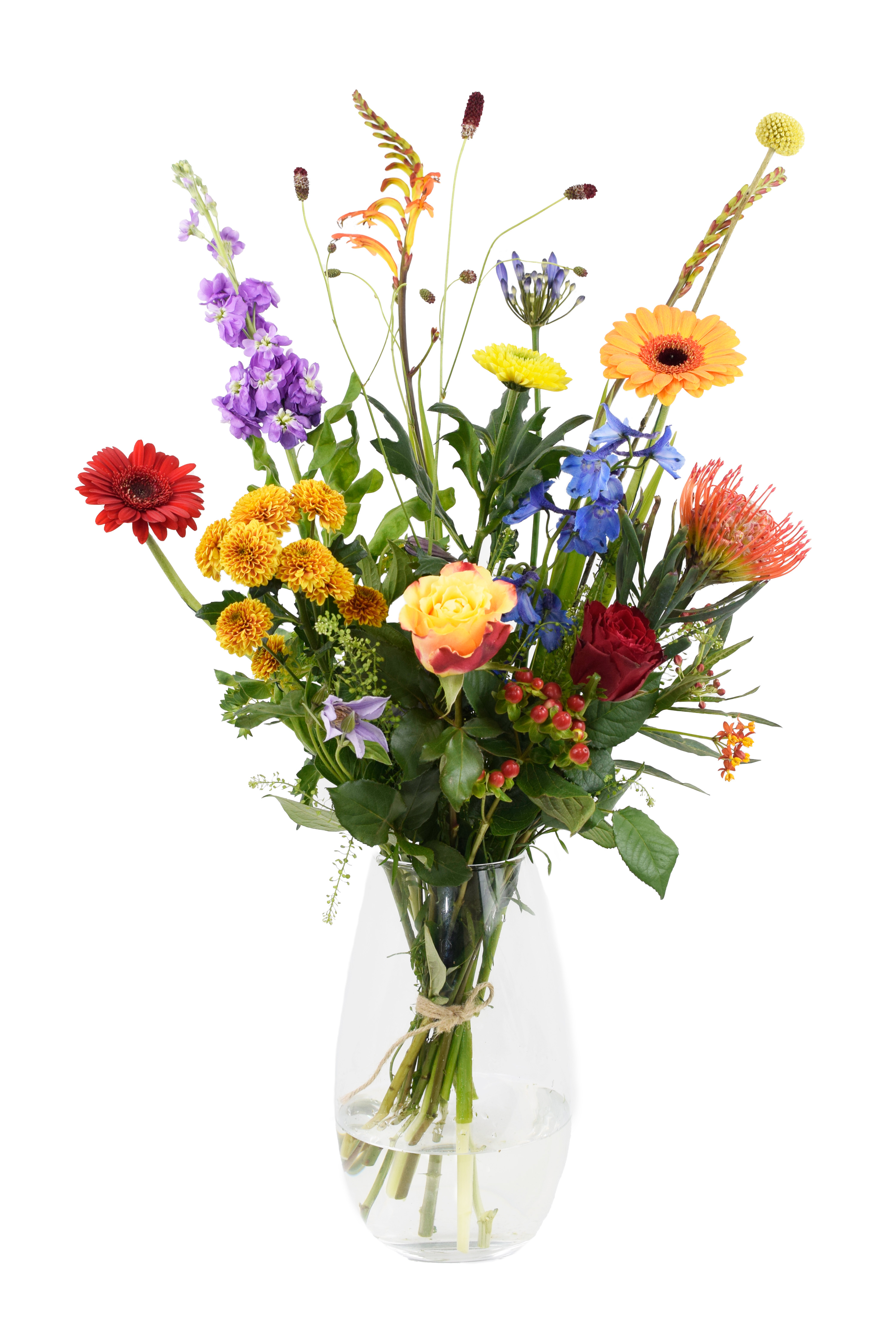 Let op: Het daadwerkelijke boeket kan iets afwijken van de afbeelding, afhankelijk van de beschikbaarheid van bloemen. We stellen altijd een verse en passende samenstelling samen in dezelfde stijl en sfeer.