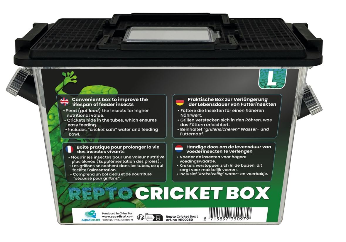 De Repto Cricket box is een kunststof terrarium speciaal gemaakt om krekels in te kunnen houden en deze vervolgens eenvoudig te kunnen voeren aan uw dieren.