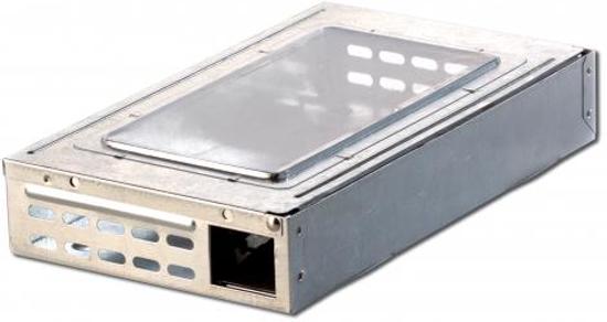 De Multicatch Muizenval van Luxan is een stevige metalen val die meerdere muizen per setting kan vangen. Door het 2 deurs systeem kunnen de muizen wel naar het lokaas gedeelte, maar daarna niet meer de val uit. U kunt de val aan de bovenkant openmaken voor het plaatsen van lokaas of het weer vrijlaten van de muizen. Afmetingen: 26 x 15,5 x 5 cm Levend vangen U plaats de Multicatch muizenval op de plaatsen waar de muizen gezien zijn of hun sporen als uitwerpselen en voedselresten. U kunt bijvoorbeeld de val parallel aan de muur plaatsen waar de muizen lopen met de ingangen zo dicht mogelijk aan de muur. Als lokaas kunt u bijvoorbeeld pindakaas, brood, spek of worst gebruiken.