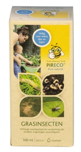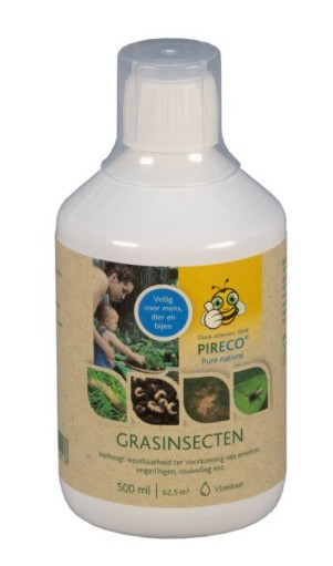 Pireco Grasinsecten bestaat uit specifiek werkende (niet toxische) kruidenconcentraten. Veilig voor mens, dier en bijen.