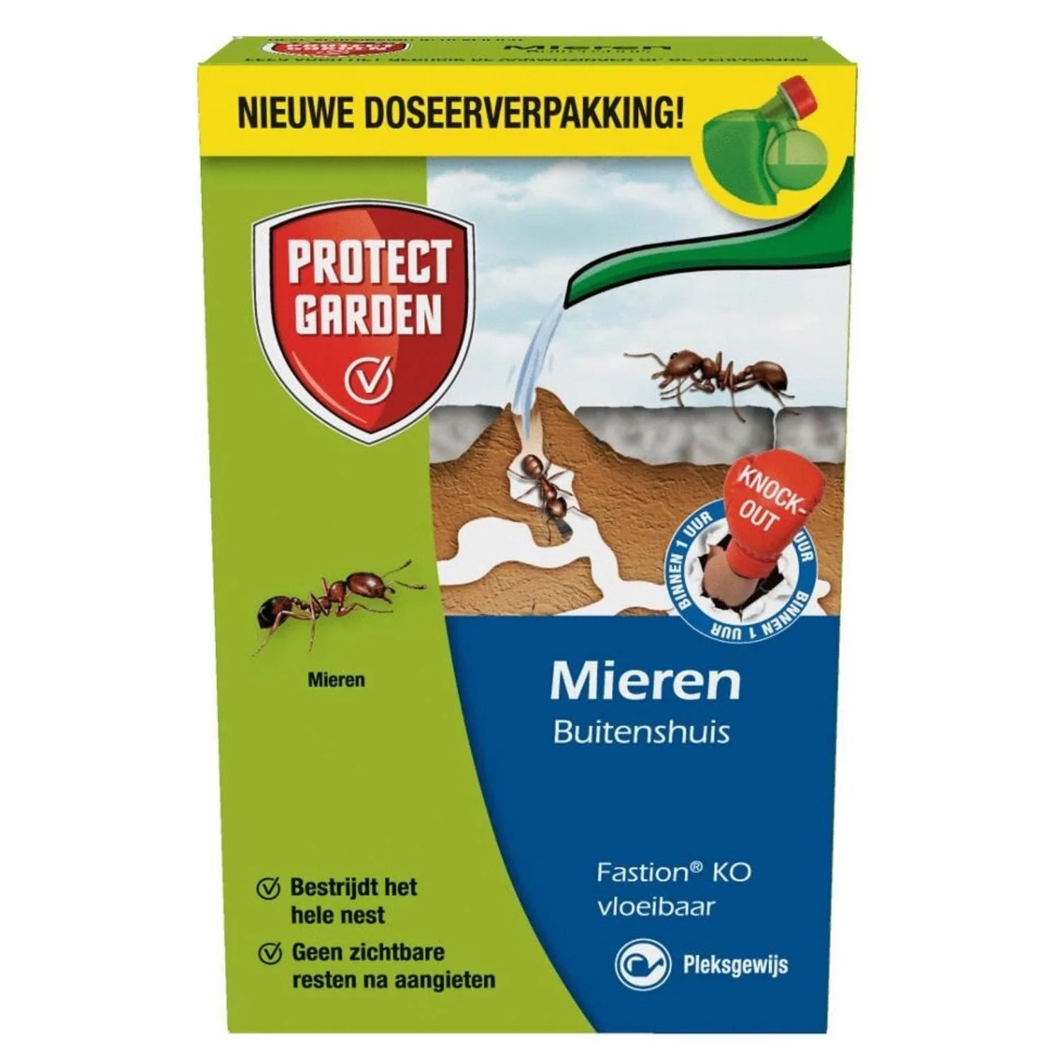 Met een gezin en huisdieren gebruik je liever geen gifstoffen die na het bestrijden blijven liggen. Baythion KO vloeibaar heeft hier een oplossing voor gevonden. Het is een middel dat moet worden opgelost in water. 20 ml per 5 liter water is voldoende voor 5 m2. De gemaakte oplossing wordt op het mierennest en rondom de ingangen gegoten. De vloeistof verdwijnt volledig in het nest waar het dan vervolgens zijn werk doet . Nadat bovengronds alles is opgedroogd, zijn er geen resten meer te zien. Productkenmerken Geen zichtbare resten na aangieten Mieren in 1 uur knock-out Voldoende voor ruim 12 mierennesten