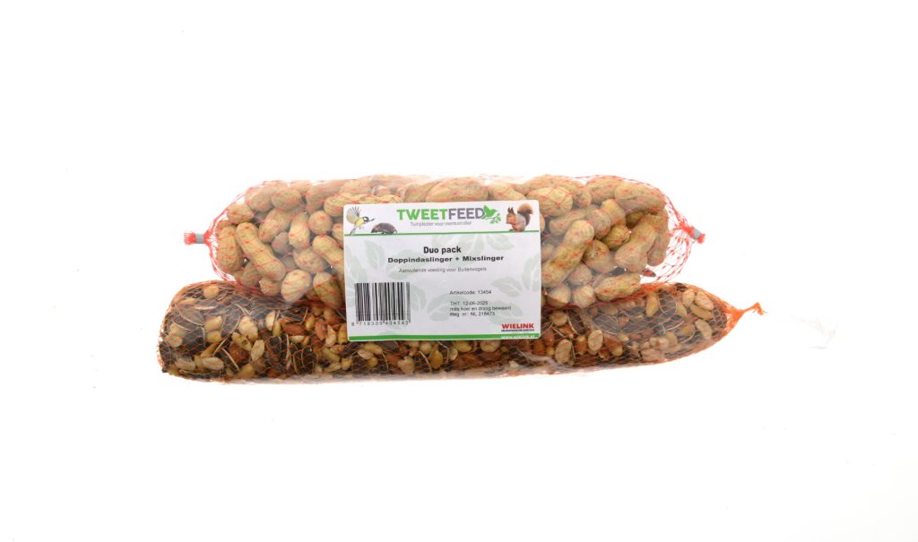 Duo pack van mix- en doppindaslinger.Totaalgewicht ca 560gr.De slingers zijn ca 35cm lang.
