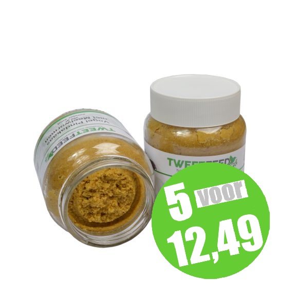 Kwalitatieve vogelpindakaas met meelwormen voor extra eiwit.Bevat geen zout.Uitvoerig getest met andere merken en Tweetfeed Vogelpindakaas wordt zeer goed opgenomen door de vogels.Niet in de zon plaatsen.Niet geschikt voor menselijke consumptie.