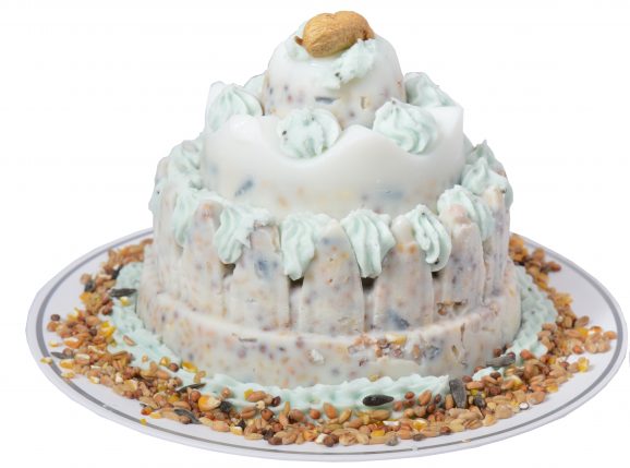Medium grote vogeltaart waar de vogels in uw tuin heerlijk van kunnen smullen. De taart is bedekt met allerlei lekkere zaden waar de vogels van zullen genieten!