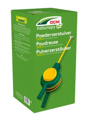 4. De DCM Poederverstuiver is nu gebruiksklaar. Hou voor een goed resultaat het gele schroefdeksel van het reservoir steeds aan de linkerkant.
