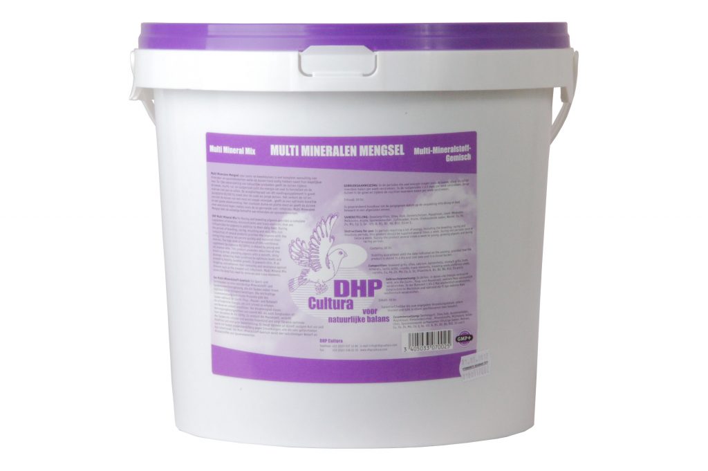 Deze unieke en uiterst complete mengeling is een uitgebalanceerde combinatie van meer dan 68 soorten grit en mineralen w.o. sporenelementen, aminozuren, diverse kruiden, roodsteen, koraalgrit, oestergrit, vele scherpe kiezelsoorten, diverse leem- en kleiproducten, zeewier, kalk, fijne oliehoudende zaden en de niet te vergeten zo belangrijke melkgist en melkzuren. Multi Mineralen mengeling is ontstaan uit jarenlang onderzoek en uit jarenlange ervaring en uitwisseling van gedachte met vele goed spelende liefhebbers. Multi Mineralen Mengeling is onmisbaar bij de dagelijkse voeding van uw duiven en heeft door zijn unieke samenstelling heel veel toegevoegde waarde in de opbouw van natuurlijke weerstand. Het vult in elk seizoen de dagelijkse behoefte aan van mineralen en sporenelementen welke in het duivenvoer ontbreken.