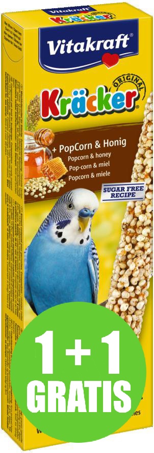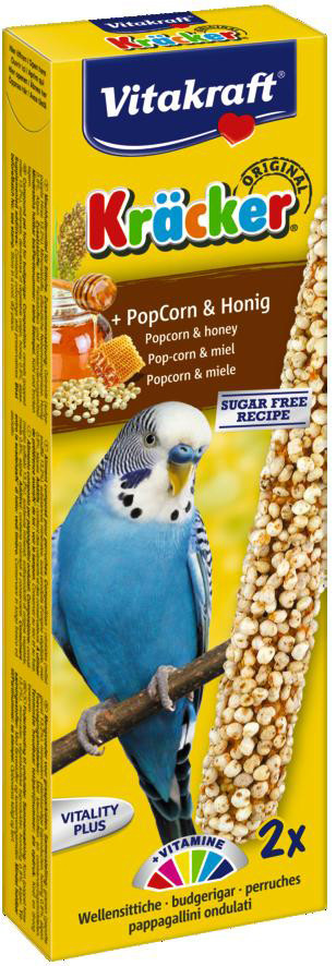 Vitakraft Kräcker Original parkiet met popcorn en honing is een verantwoorde lekkernij en bevat lekkere granen, popcorn en honing op een natuurlijk knabbelhoutje.