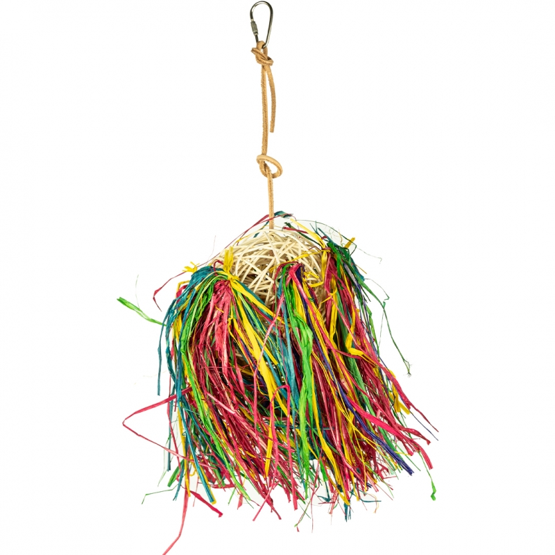 De Back Zoo Nature Hay Sway is een geweldig foerageer en snipperspeeltje in een. Tussen al het kleurrijke hooi van de Back Zoo Nature Hay Sway zit een gevlochten bal waarin heerlijke snacks verstopt kunnen worden. In de natuur spenderen papegaaien het grootste deel van hun tijd aan foerageren (het zoeken en verzamelen van eten). Daag jouw kromsnavel uit om net als in de natuur moeite te doen voor zijn/haar eten. Het belletje aan de onderkant van de Back Zoo Nature Hay Sway maakt dit speeltje nog aantrekkelijker.