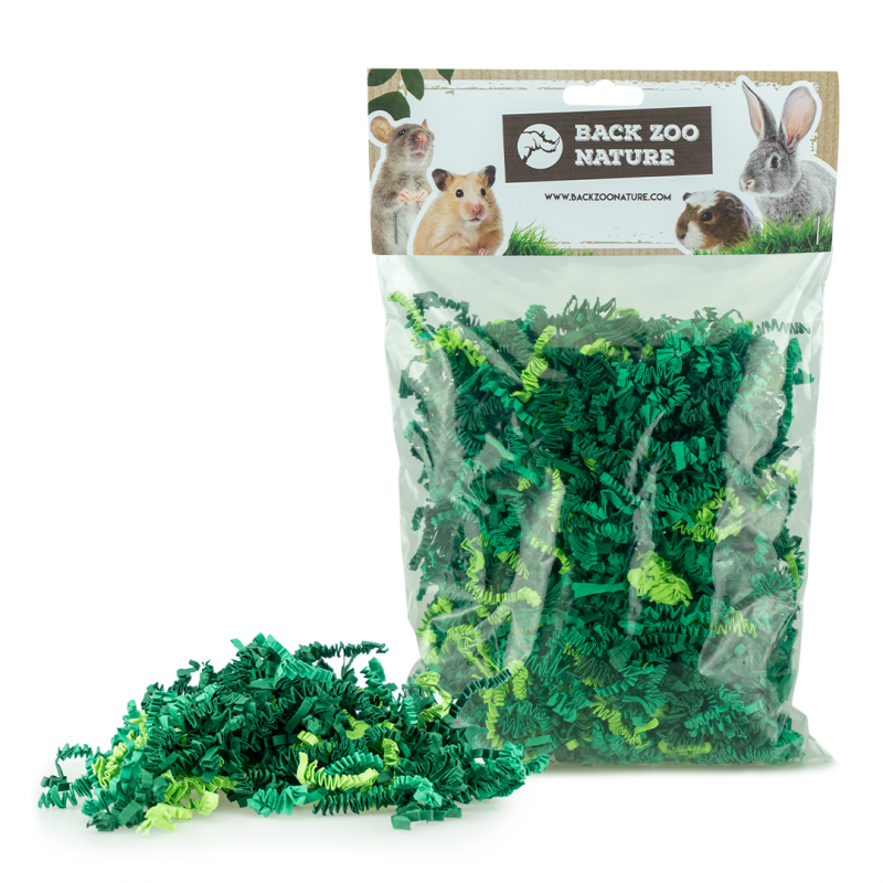 Back Zoo Nature Rodent Crinkle Paper Forest Mix is natuurlijk kreukelpapier in de kleuren van een tropisch regenwoud wat op verschillende manieren gebruikt kan worden. Knaagdieren vinden het geweldig om het kreukelpapier te versnipperen en erin te spelen. Back Zoo Nature Rodent Crinkle Paper Forest Mix is ook ideaal nestmateriaal voor knaagdieren omdat het stofvrij is. Knaagdieren vinden het kreukelpapier nog interessanter als er iets lekkers tussen verstopt ligt.