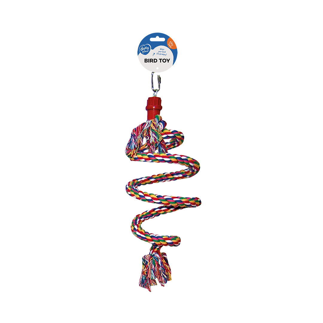 Vogels vinden kleurrijke speeltjes echt leuk. Een katoenknoop met leuke leder lintjes, houten blokjes of belletjes is heerlijk om aan te knabbelen. Ze schommelen er ook erg graag op. Het houdt je vogels actief en je bevestigt het eenvoudig in iedere volière.