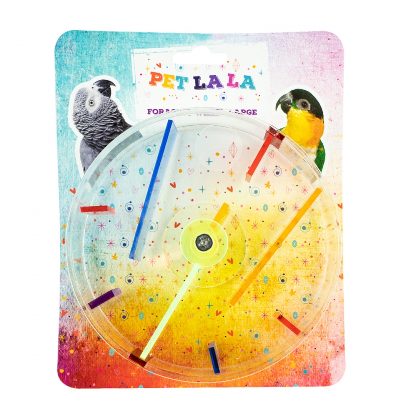 Het Petlala Foraging Wheel Large is foerageer speelgoed voor papegaaien. Het Petlala Foraging Wheel Large is een doorzichtig wiel met kleurrijke plankjes die het jouw papegaai lastig maken om bij zijn snack te komen. Dit foerageerspeeltje zal de hersenen van jouw intelligente papegaai laten kraken en hem voldoening geven wanneer zijn snack de uitgang bereikt.