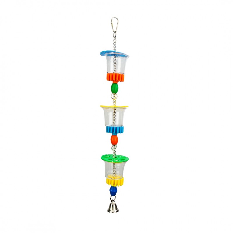 Vul een, of twee, of alle drie de cups met lekkers om uw vogel lekker te laten puzzelen.